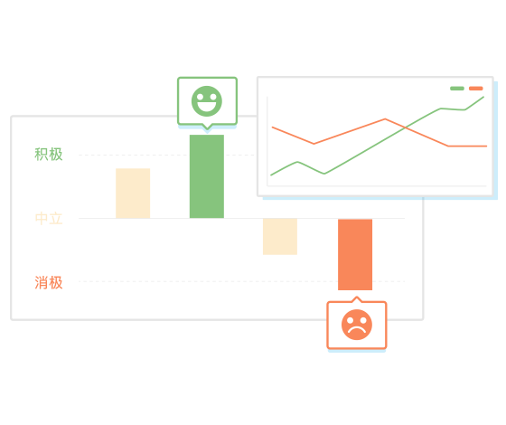 系统分析一段时间内访客、客服的全部消息情感指数趋势图,以及使用频次最多的关键词情感指数,包括积极、中立和消极。客服管理团队可以清晰的看到系统整体以及单个关键词的情感分析情况,了解访客的真实情绪